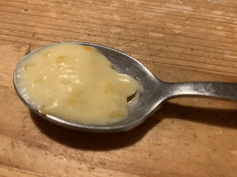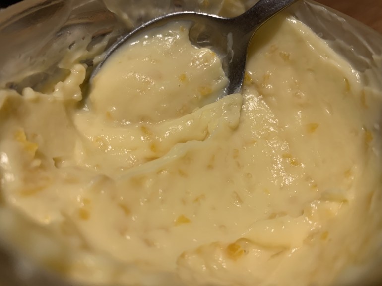 Le Lemon Curd, cette douce crème onctueuse, fondante et acidulée, j’adore; mais, j’y vais renoncé pour cause de trop de sucre, trop de gras, trop, trop…